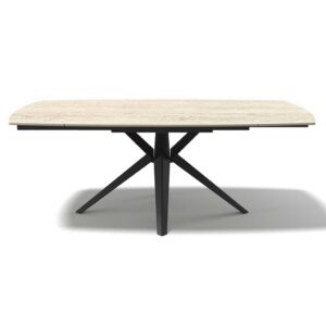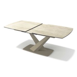 Triumph – Eetkamertafel keramisch – champagne / Travertin look MXC131 – 180 (man. verlengbaar)