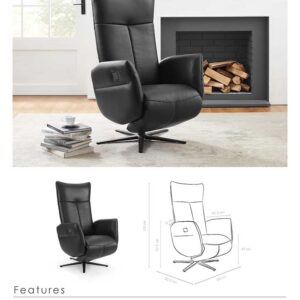 - Ervaar comfort en luxe met de Edda 4-Motorige Relaxzetel. Met zijn verstelbare rugleuning en voetsteun, liftfunctie en elektrisch verstelbare hoofdsteun, kunt u moeiteloos de ideale positie vinden voor ontspanning. De afneembare handbediening en oplaadbare batterij zorgen voor ultiem gemak, terwijl de zwart metalen draaivoet met ingebouwde stopfunctie een 300° draai mogelijk maakt. Gemaakt van hoogwaardig leder. 4-motorige relax Verstelbare rugleuning…