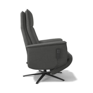 - Met zijn 4-motoren: verstelbare rugleuning, voetsteun, kantelfunctie voor een zero gravity positie en elektrisch verstelbare hoofdsteun, biedt deze relaxzetel Calpe een ongeëvenaard comfort.. De oplaadbare batterij en zwarte metalen draaivoet met ingebouwde stopfunctie zorgt voor maximale flexibiliteit en veiligheid. Vervaardigd uit Bull stof: een 100% gerecycleerde ledere achterkant en een gebreide microsuède bovenlaag die bovendien een vuilwerende behandeling heeft gekregen. …