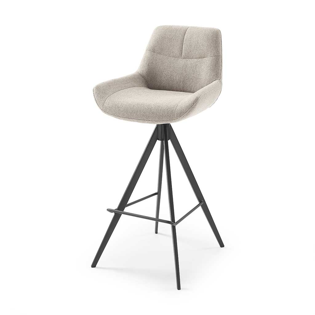 Ontdek de veelzijdige elegantie van onze Bari barstoel. Verkrijgbaar in twee zithoogtes, met luxe bekleding en een handige terugdraaiende zit. De zwarte metalen poot met voetrust biedt stabiliteit, terwijl het tijdloze design klasse toevoegt aan elke ruimte.