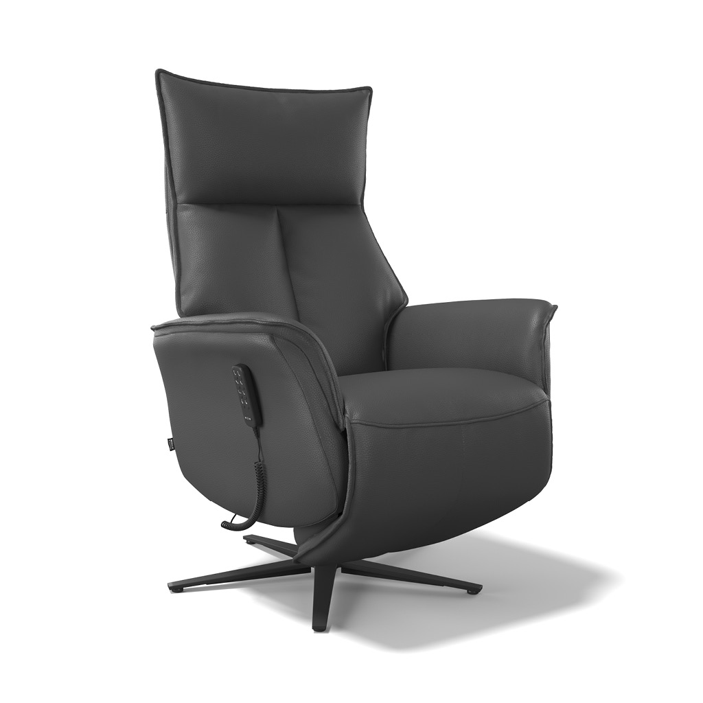 Met zijn 4-motoren: verstelbare rugleuning, voetsteun, liftfunctie en elektrisch verstelbare hoofdsteun, biedt deze relaxzetel Calpe een ongeëvenaard comfort. De oplaadbare batterij en zwarte metalen draaivoet met ingebouwde stopfunctie zorgt voor maximale flexibiliteit en veiligheid. Vervaardigd uit kwaliteitsleder.