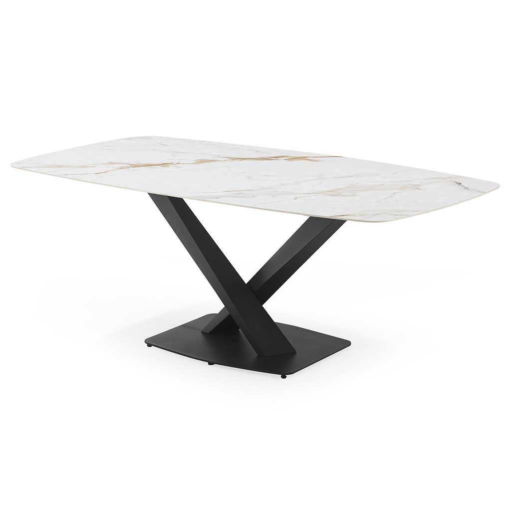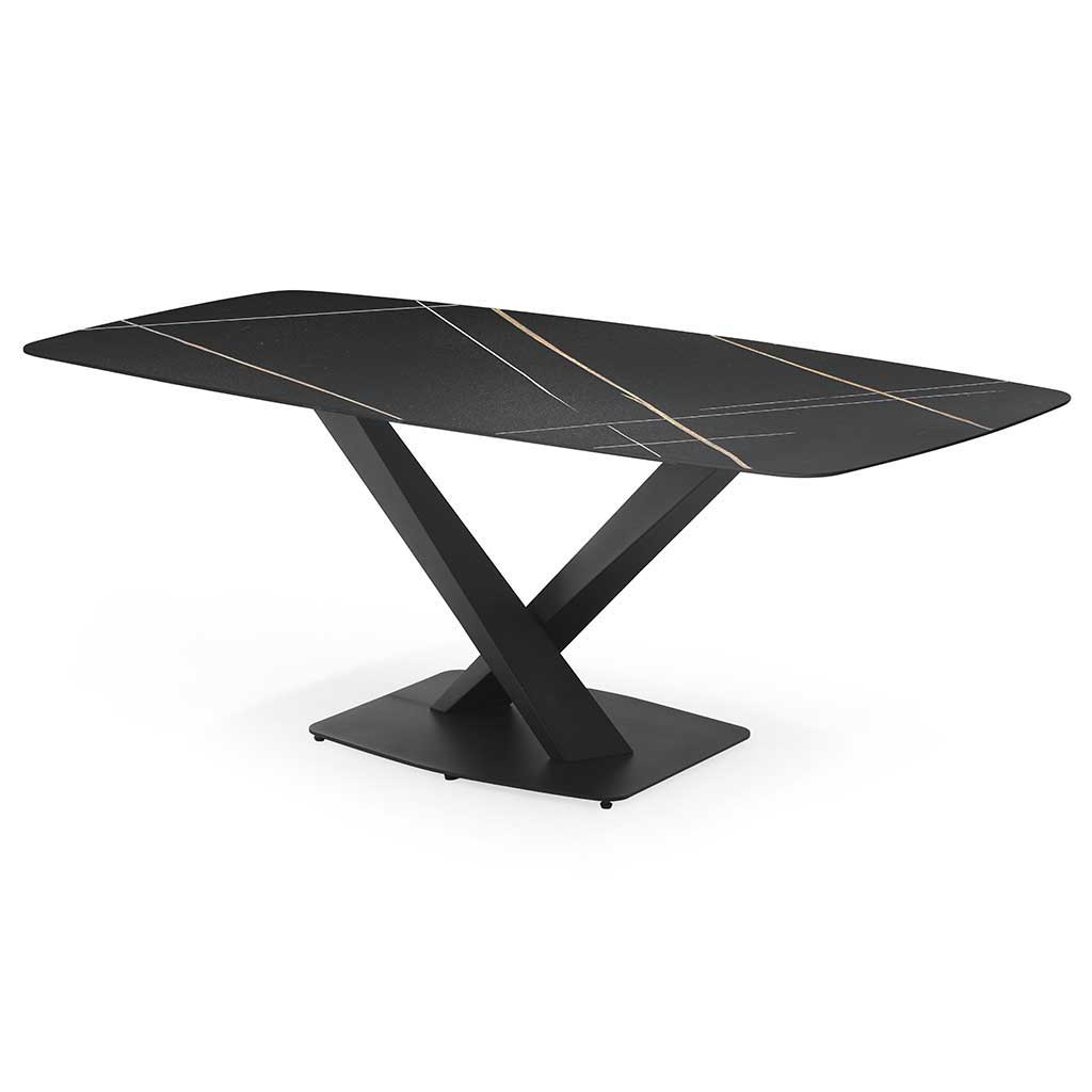 Met zijn gepoedercoat zwart metalen frame en moderne V-poot is deze Victory tafelpoot de eyecatcher van u eetruimte. De praktisch regelbare voetdoppen zorgen voor stabiliteit op elke vloer, Geschikt voor een tafelblad van 240 x 100 cm (tafelhoogte 76 cm).