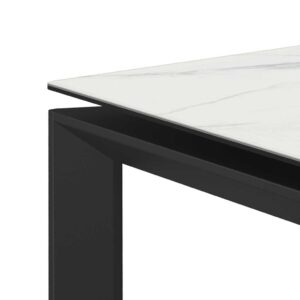 Ontdek de elektrisch (met batterij) uitschuifbare Haku eetkamertafel. Deze rechthoekige tafel, met afmetingen van 160 x 100 cm (uitschuifbaar tot 210 cm). Het glazen tafelblad met een keramische top, is krasbestendig en zeer onderhoudsvriendelijk. De tafel staat stevig op een gepoedercoate kruispoot met handig uitschuifsysteem.