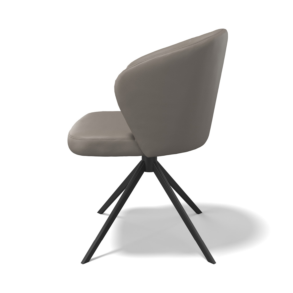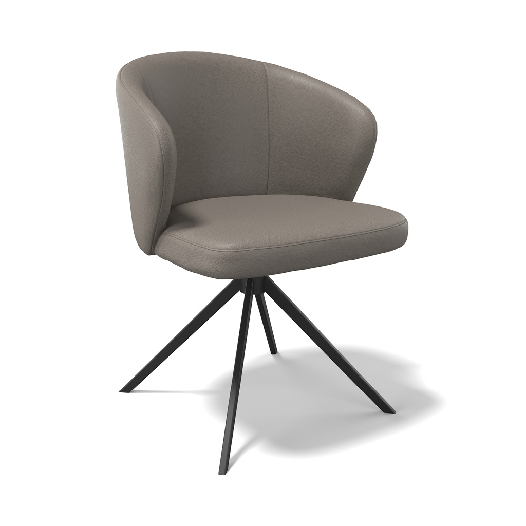 Ontworpen door Modulax: strak design met hoog zitcomfort. Lazio heeft een afgeronde rug, draaibare zit en een zwarte metalen poot. Bekleed met kwaliteitsleder – ideaal voor lange diners.