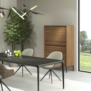 Ontdek de Lima barkast: stijlvol en praktisch. Gemaakt van MDF met White Wash Oak fineer. Deze kast heeft 4 deuren voor eenvoudige toegang tot je spullen. Met afmetingen van 100 cm x 45 cm x 160 cm past hij perfect in elke ruimte. Het unieke zwarte keramische top voegt een vleugje luxe toe, terwijl de 4 gepoedercoate zwarte metalen poten zorgen voor stabiliteit en een eigentijdse uitstraling.