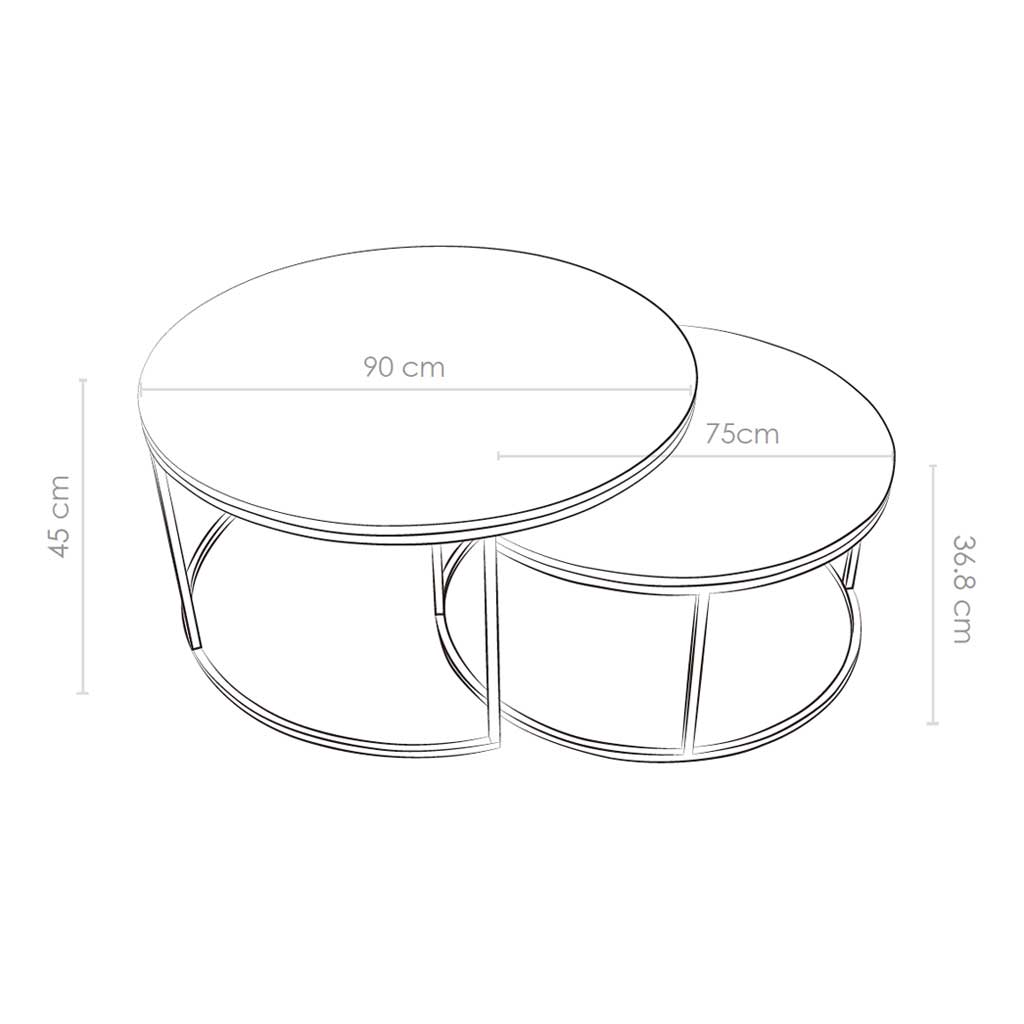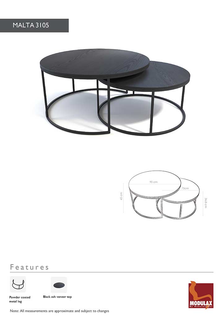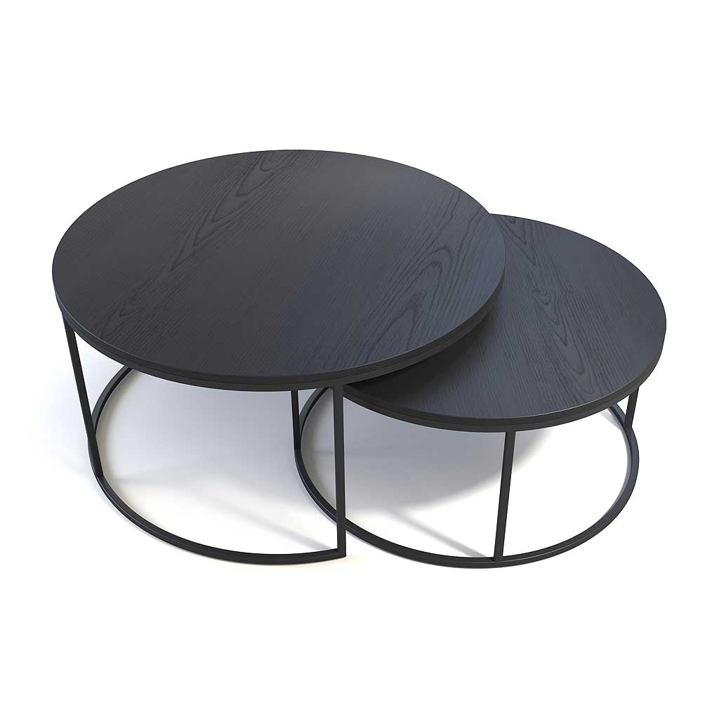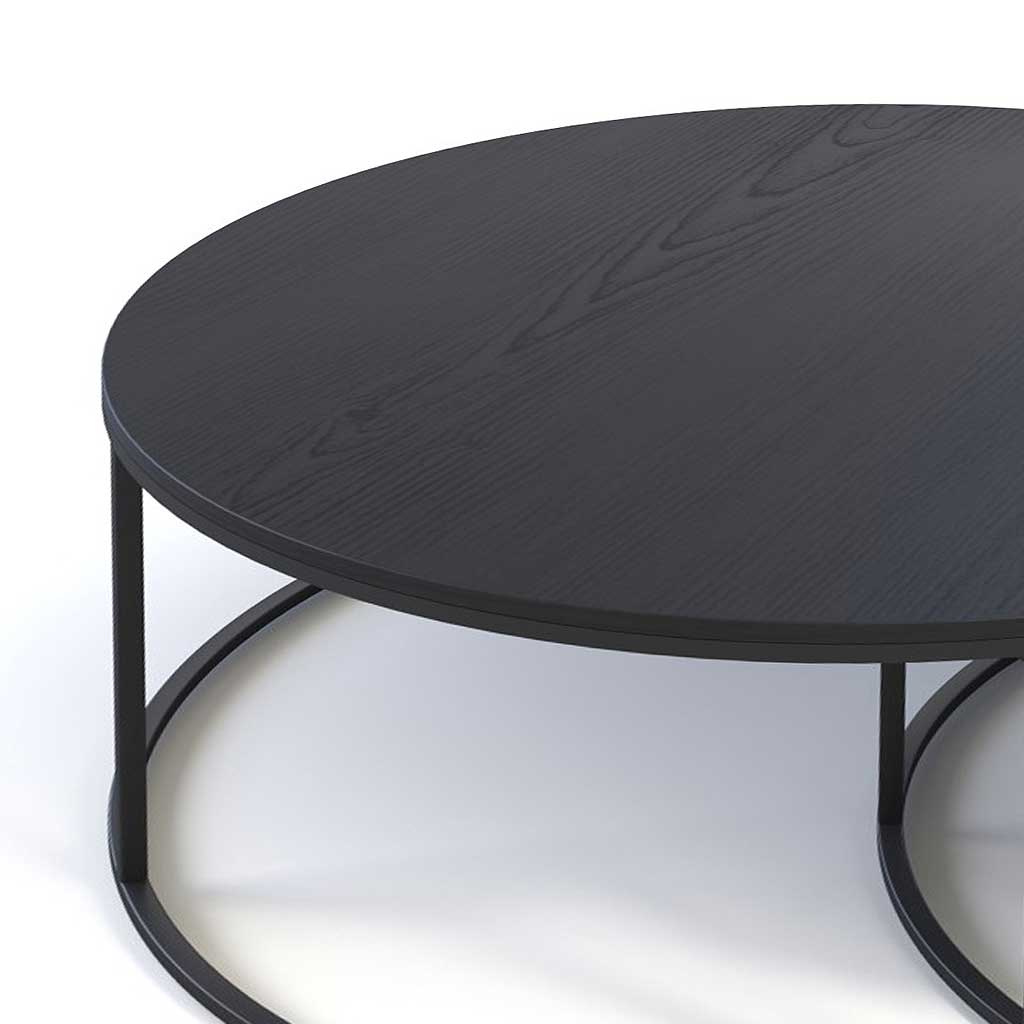 Ontdek de ronde salontafelset Malta. De Top is MDF met zwart hout fineer en een zwart gepoedercoate frame. Oogt heel modern.
