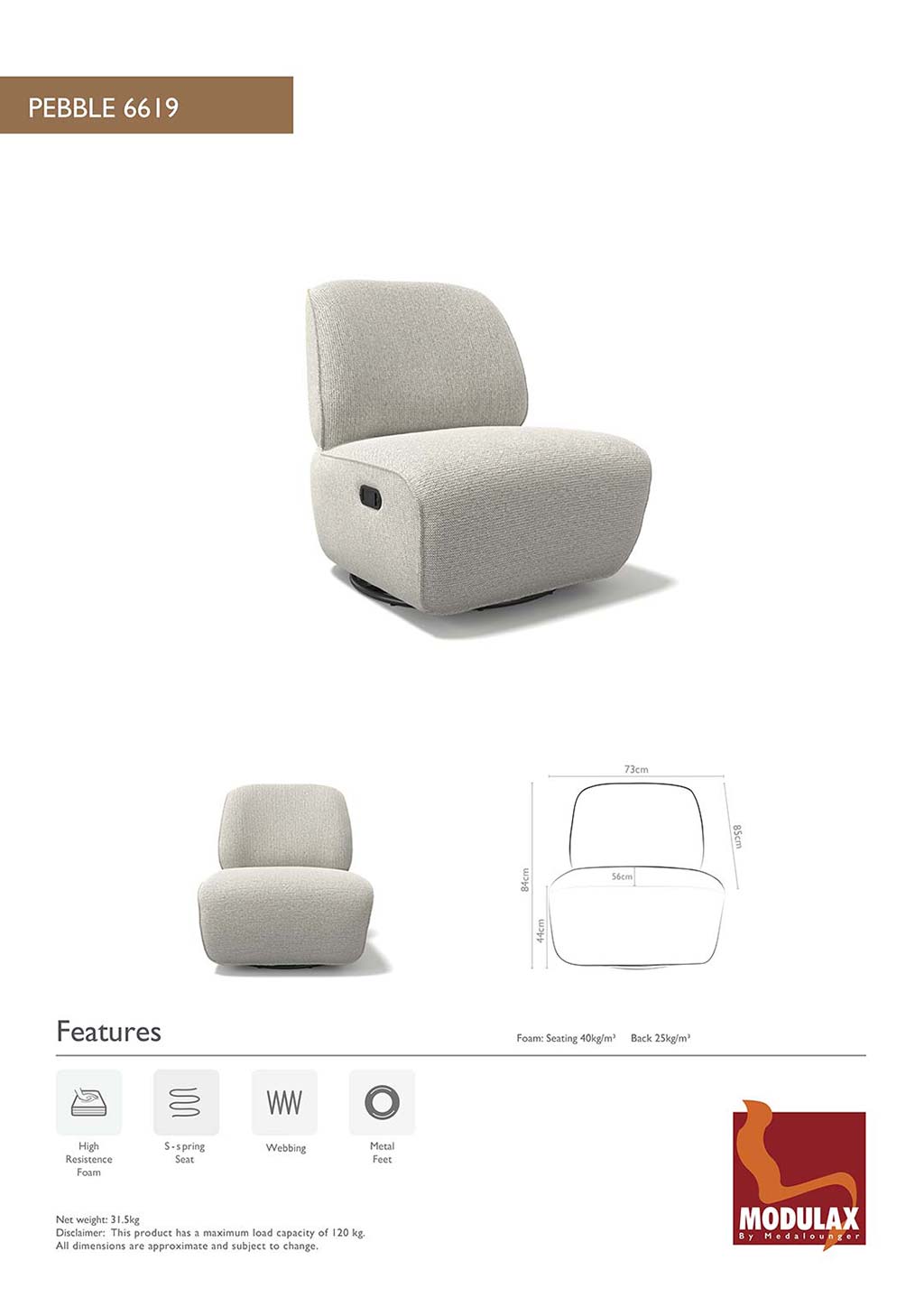 De bijzetzetel PEBBLE biedt meer dan zijn compacte vorm doet vermoeden. Dankzij de draaibare basis en manueel verstelbare rugleuning geniet je van optimaal zitcomfort, helemaal op jouw maat. Bekleed met een hoogwaardige kwaliteitsstof past PEBBLE moeiteloos in elk interieur, van modern tot klassiek.
